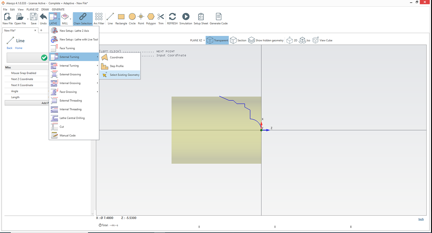 • Intuitive graphical interface for creating common operations: Turning, grooving, threading, center drilling, cut-off operation, positioning, custom G-codes.
