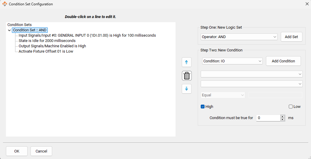 How It Works: Install a simple switch with positions for each fixture configuration. When you select a specific fixture, MachPro automatically applies the G54 work offset. No manual offset selection, no mistakes. Although there are more conditions to define, it is still a no code setup process as shown below.