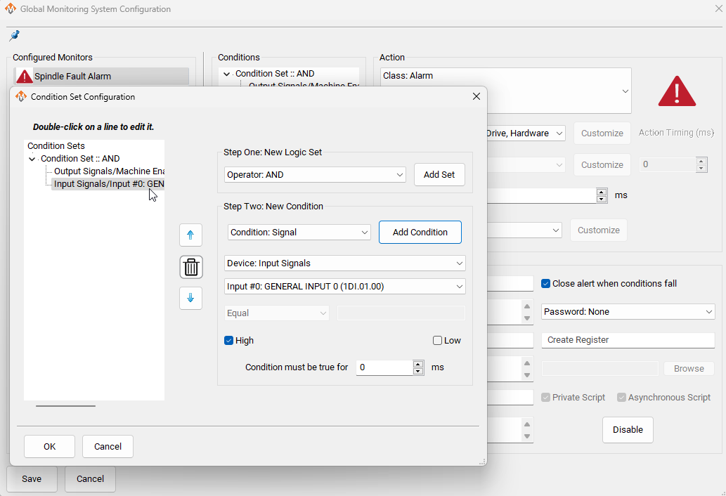 The Solution: Monitor the fault output from your spindle drive. When a fault occurs, the Global Monitoring System immediately stops motion and disables the machine before damage happens.